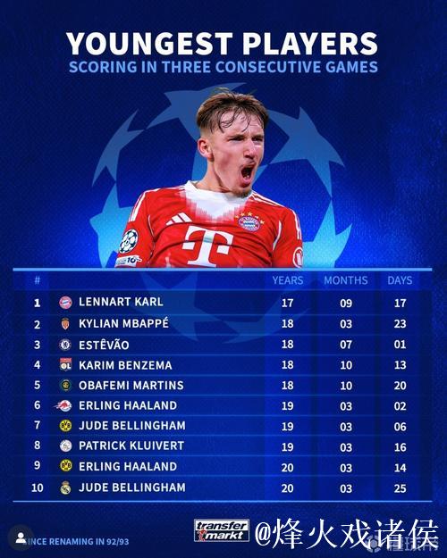 随着欧冠联赛进入改制后的新时代,纪录被不断刷新,而属于年轻人的名字,正在更频繁地出现在历史榜单之中。近日,17岁的卡尔德在欧冠赛场连续三场破门,一举登顶“欧冠改制后最年轻连续3场破门球员”榜单,引发了